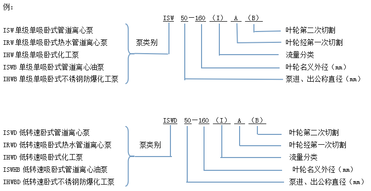 6、ISWD、IRWD、IHWD、IHWD、ISWBD、IHWBD型卧式低转速离心泵,适用于环境噪声要求低的场合及空调循环泵等。